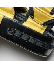 Estas manoplas largas estilo tailandés son ideales para el entrenamiento con combinaciones usando los codos y rodilla. Fabricadas en piel natural de alta calidad. Más ligeras que los paos, también llamadas patas de oso.